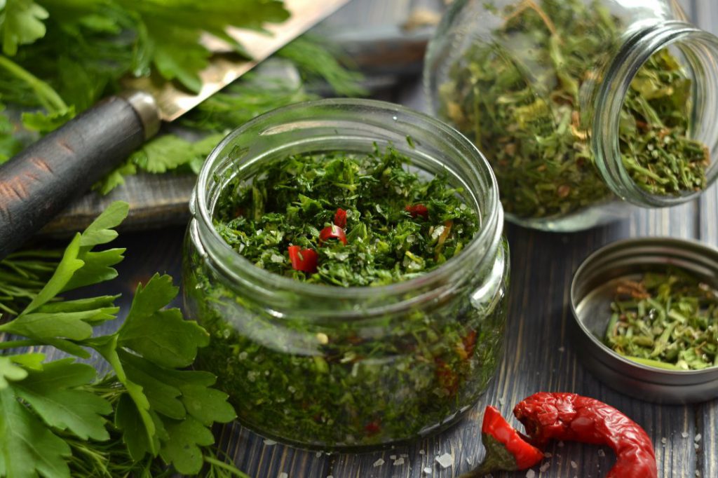 Сначала измельчить зелень. Потом засыпать ее в стерильную сухую стеклянную банку и убрать в морозильник.